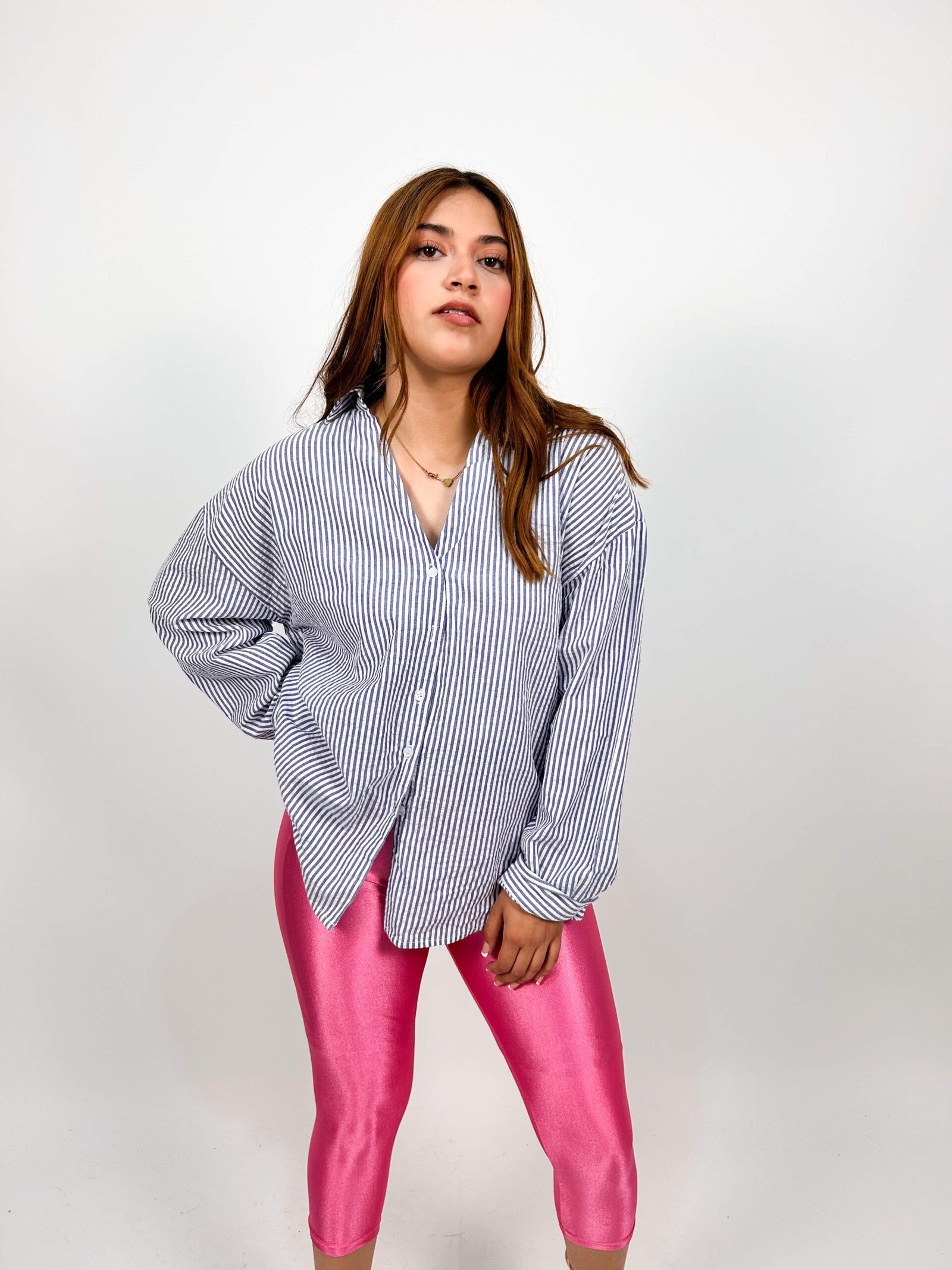 Observaciones: Camisa blanco con rayas azul, manga larga con botones blancos. Corte recto, tela de excelente calidad.