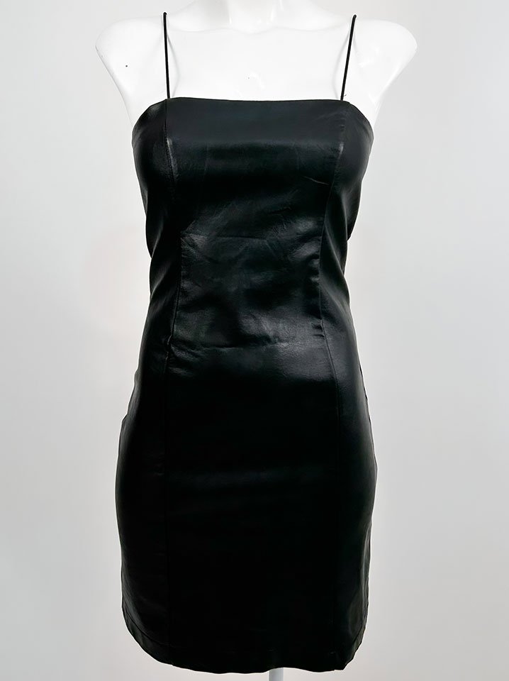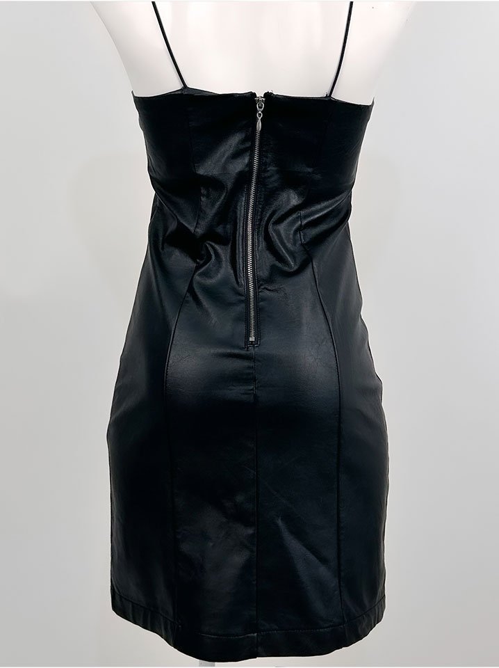 Observaciones: Vestido de tirantes, tela tipo cuero se ajusta a ti, no estira, atrás tiene cierre.